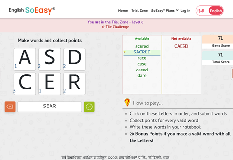 English SoEasy® gives children the edge, with its daily 15 minutes of fun, English playway content, a vast array of puzzles and interactive word building games.